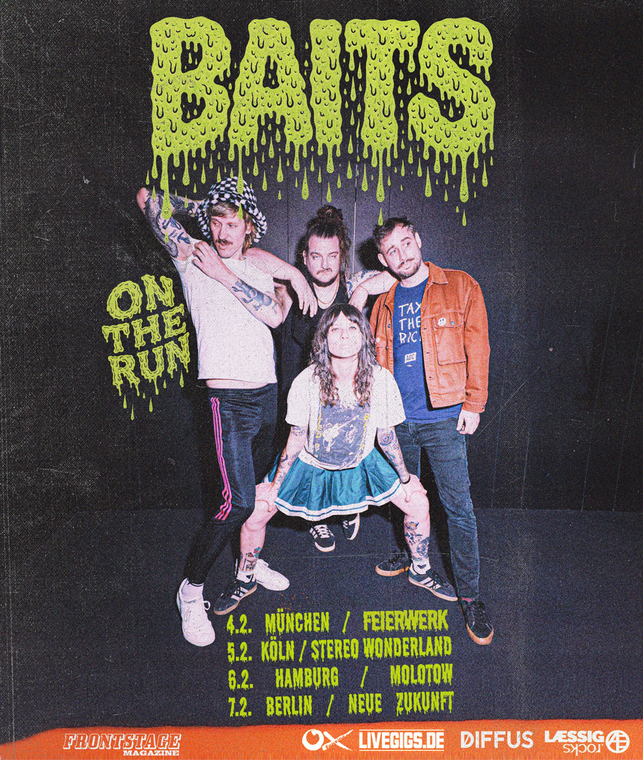 BAITS oscillate between punk energy, pop instinct, and the sweaty charm of the ’90s – raw, melodic, and always a little unpredictable, driven by rough edges placed with intent.